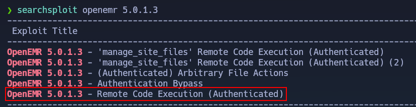 Usaremos searchsploit para buscar por posibles exploits para dicha versión y veremos que es vulnerable a un RCE.