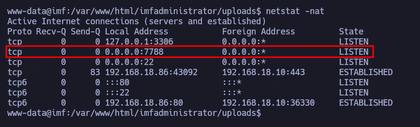 Si hacemos un netstat -nat observamos que hay un servicio corriendo por el puerto 7788.