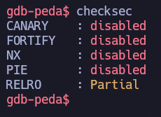 A continuación lo que debemos hacer es comprobar las protecciones que tiene en binario para ver por donde encaminar nuestro Buffer OverFlow, para ello ejecutaremos checksec y vemos que no tiene ningún tipo de protección, por lo que de primeras podremos ejecutar directamente un shellcode en alguna dirección de memoria, ya que NX está disable.
